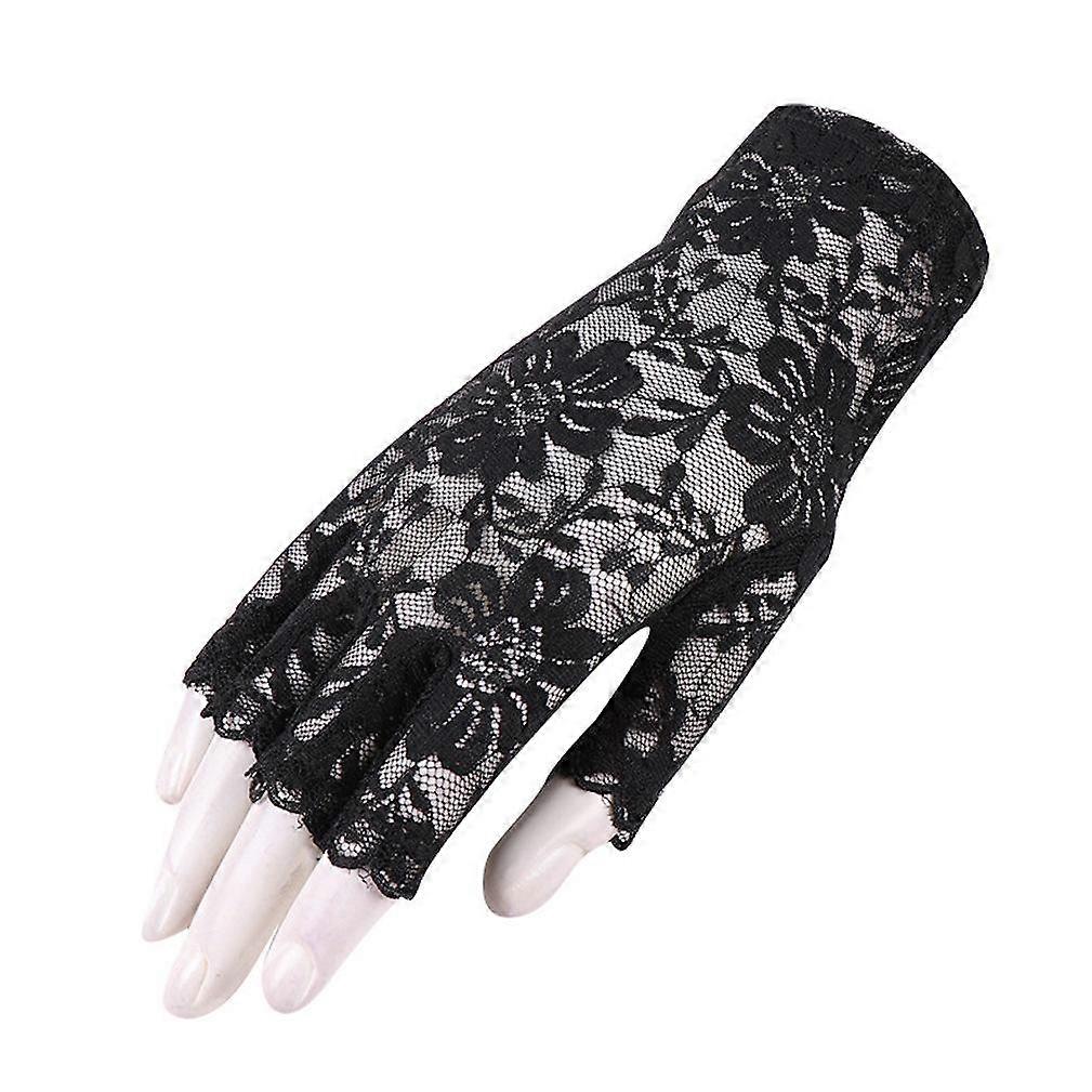 Half Finger Gloves Club Sun Protection Floral Lace Gloves Black