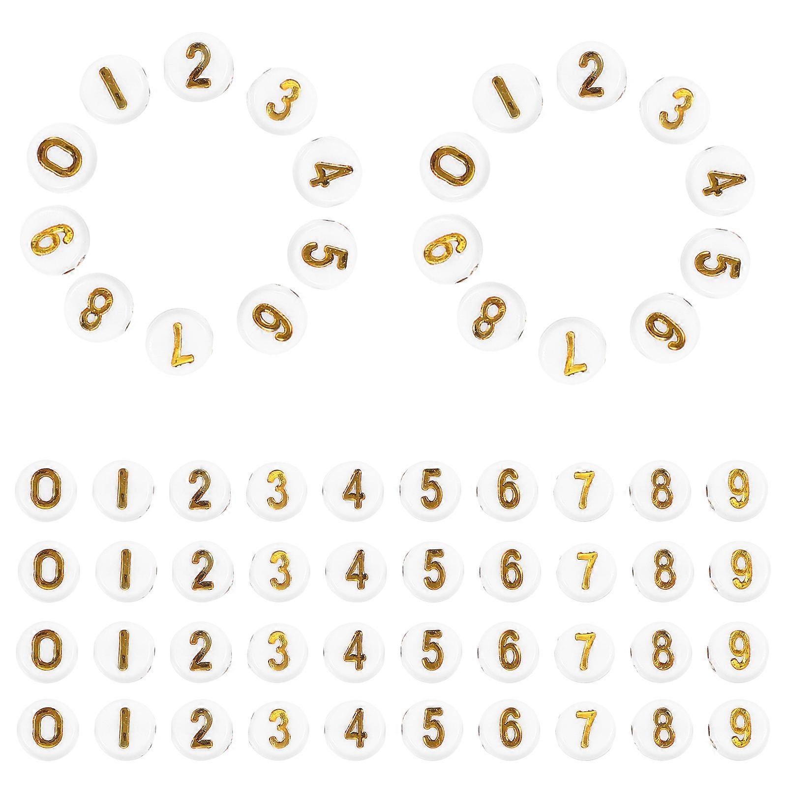 Number Beads for Bracelet Making Acrylic Golden 100Pcs