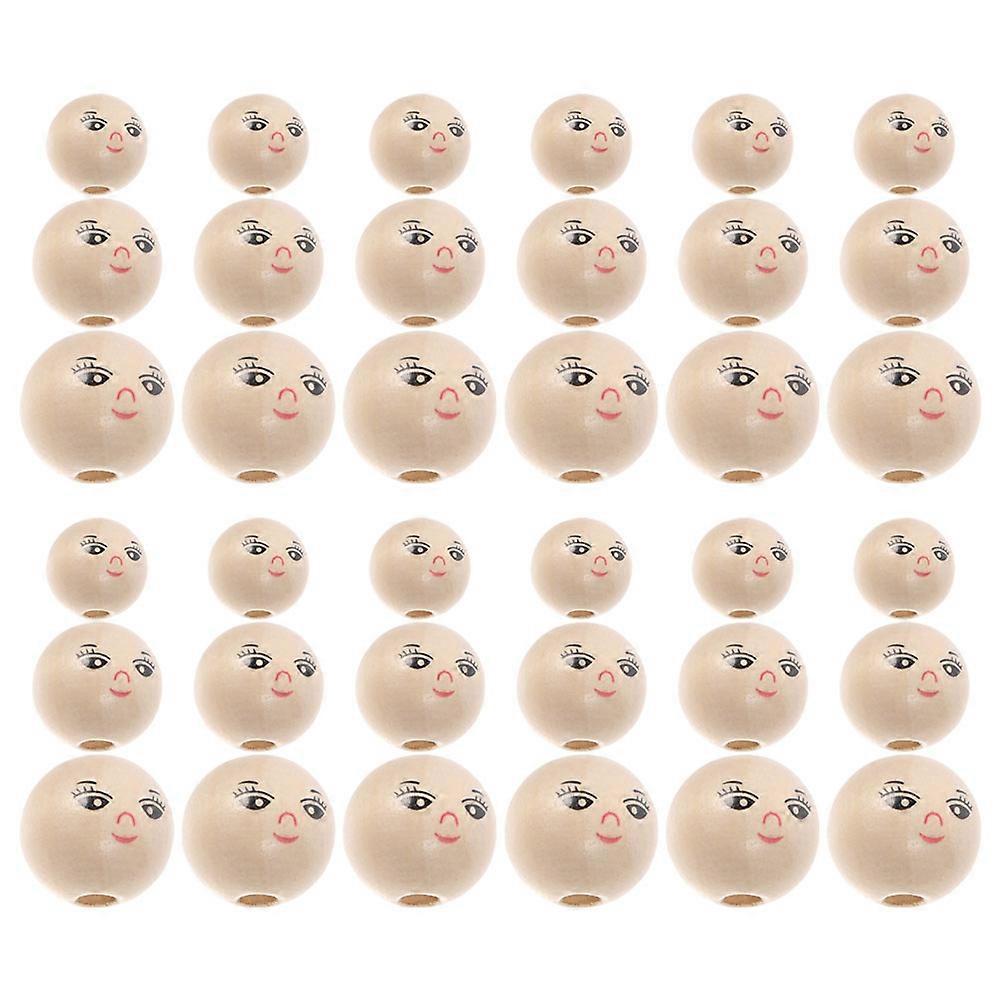 Unfinished Wood Beads Smile Face Round Craft Decoration 14mm Natural Wood 60Pcs