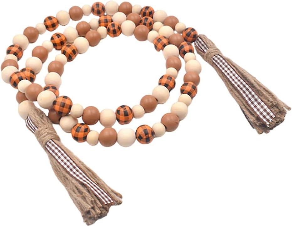 Halloween Wood Beads Garland Fall Autumn Plaid Tassel Pendant Farmhouse Rustic Beads Hanging Ornament For Halloween Party Tiered Tray Wall Decor(1pcs,