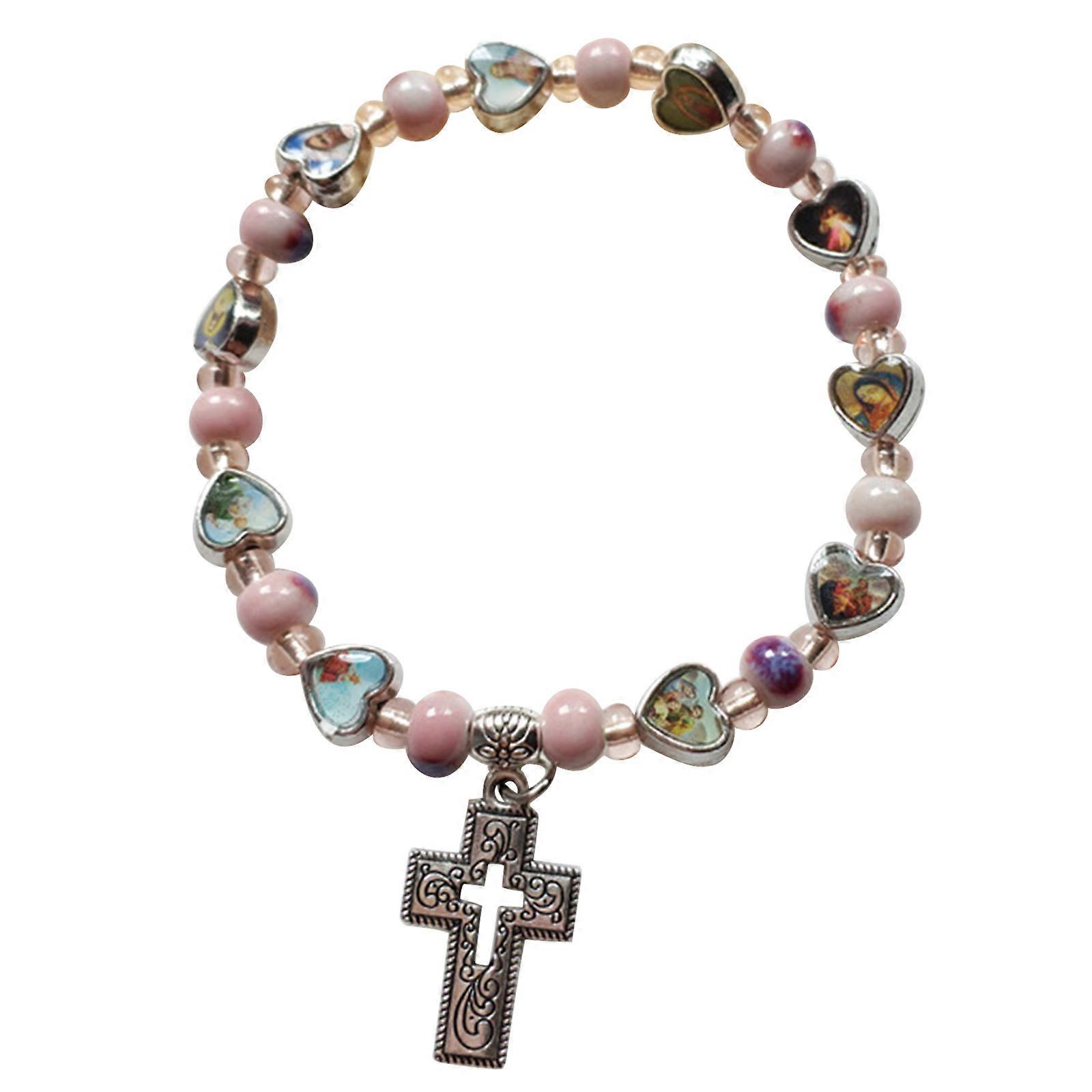 Bead Cross Bracelet Charm Beaded Elastic Bracelets Men Women Christian Jewelry Gift Bead Bracelet Cross Pendant Bracelet Pink