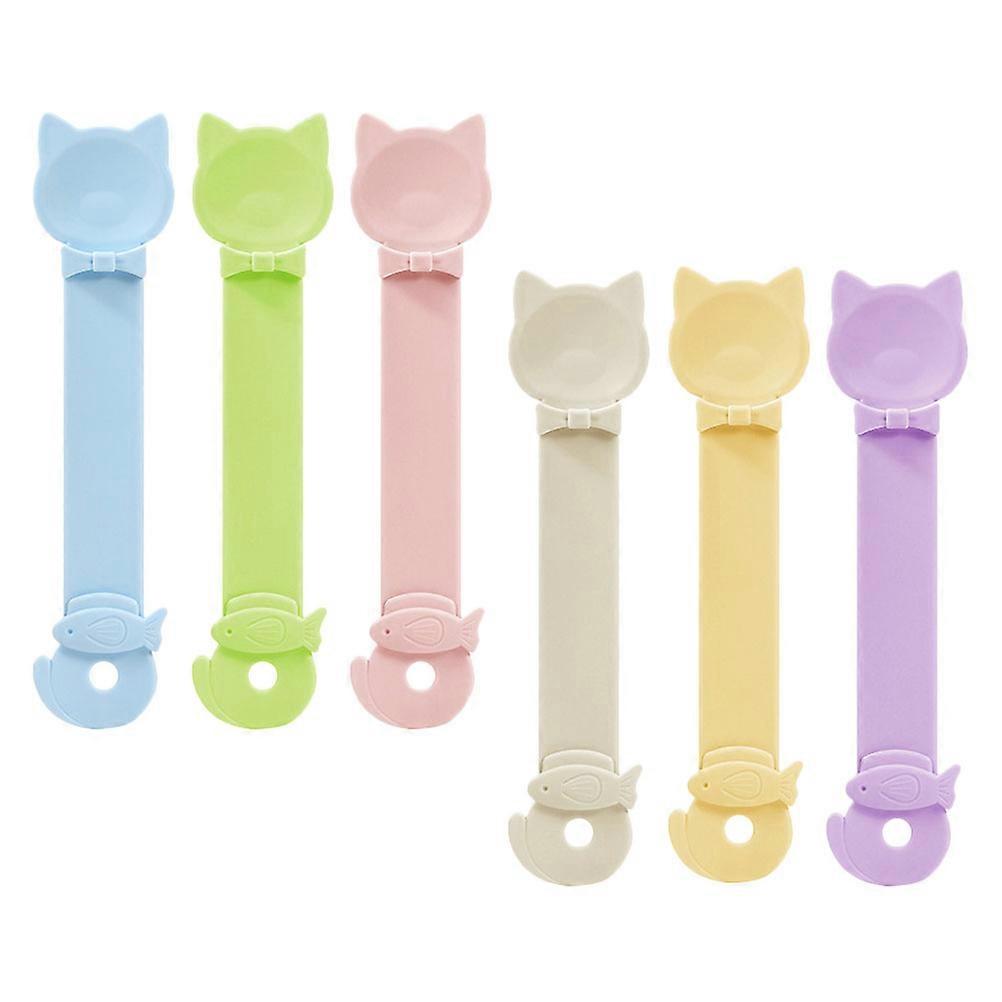 Cat Snack Feeding Spoon Ear Shaped Plastic Assorted Color for Home Use Feeding 6Pcs
