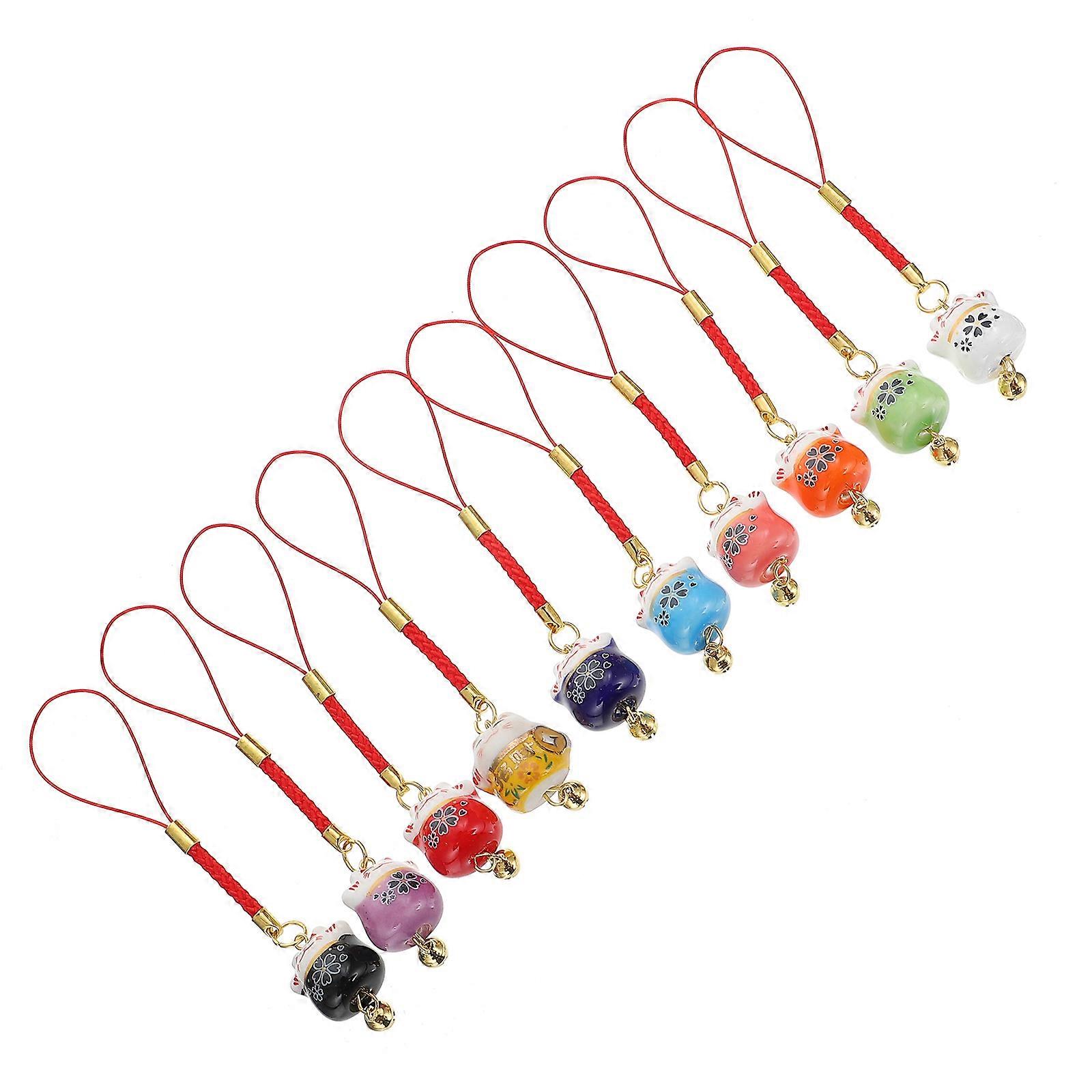 Cat Mobile Phone Charm Assorted Color 10x2cm Ceramic Rope Electronic Accessories 10Pcs