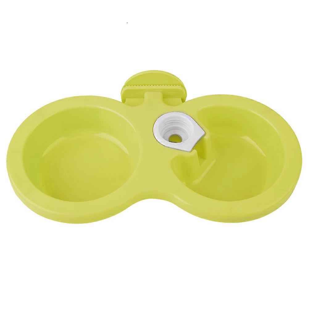 Pet Cat Dog Puppy Double Bowl Hanging Food Water Feeder For Crate Cage Small (Green)