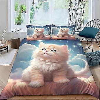 חתול מצויר הדפסת תלת מימד סט כיסוי שמיכה סט מצעים עם סגירת רוכסן נסתרת, כיסוי שמיכת מיקרופייבר פוליאסטר לבני נוער סט 3 חלקים