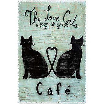 חתול מצחיק שלט קיר מתכת אזהרת פח שלטי תלייה לוח וינטאג 'פוסטר אמנות תפאורה ציור ברזל 8x12 אינץ '