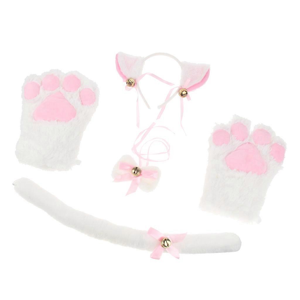 Cat Cosplay Set Plush Gloves Kitten Ear Tail Collar Paws Party Costume White