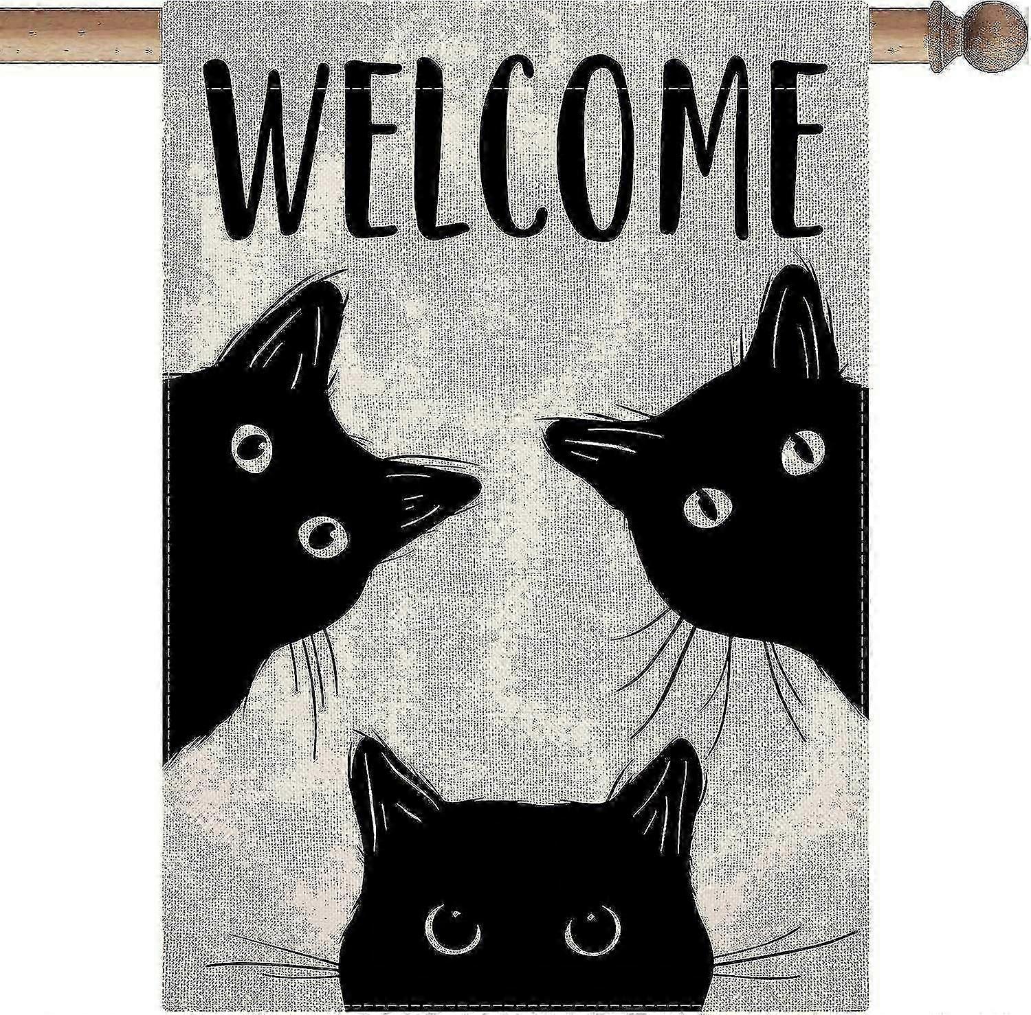 Black Cat Garden Flag Cat Flag Welcome Garden Flag Halloween Yard Flag Double Sided Burlap Holiday H