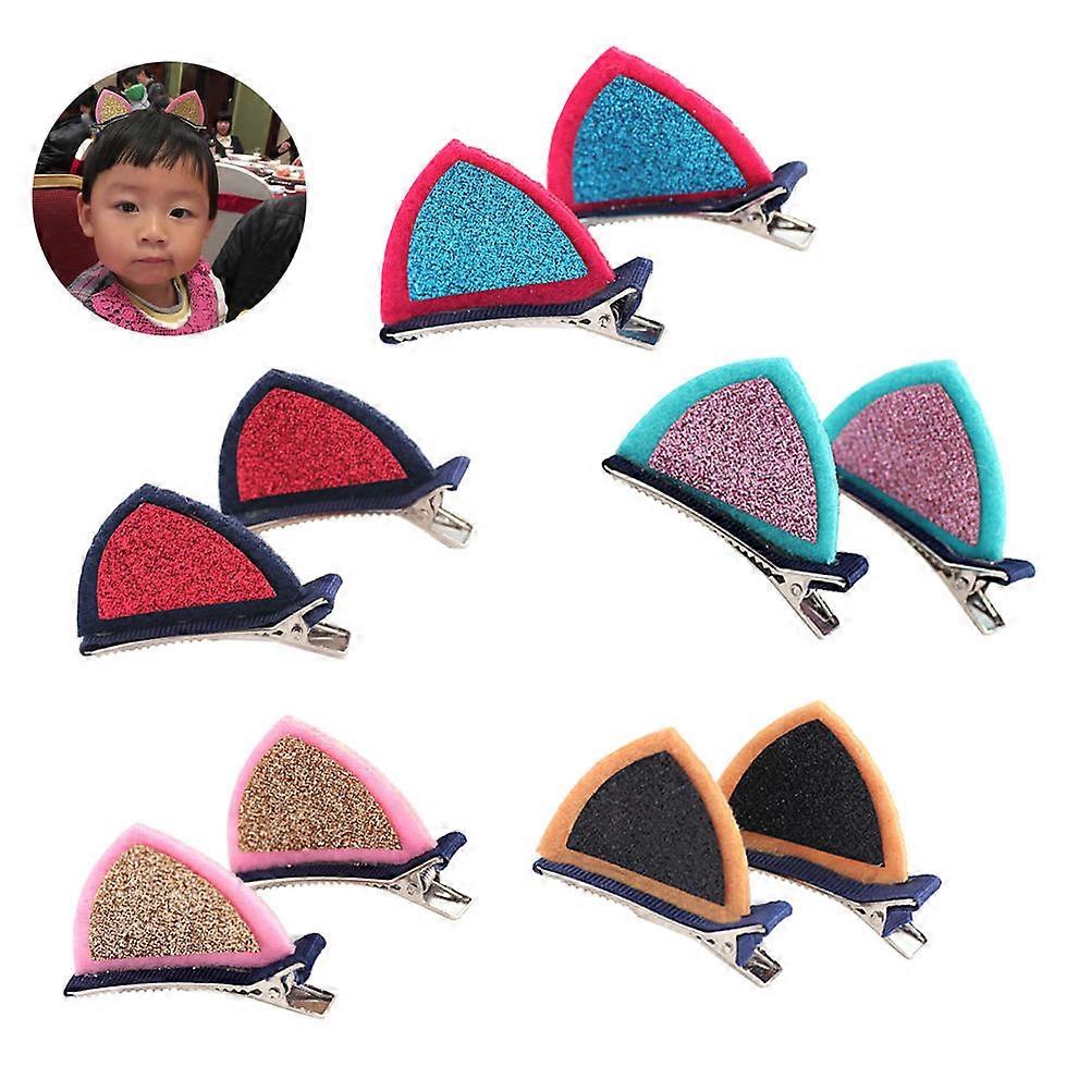 Cat Hair Clips Girls Hairpins Cat Ear Shape Fabric Metal Daily Wear 5 Pairs