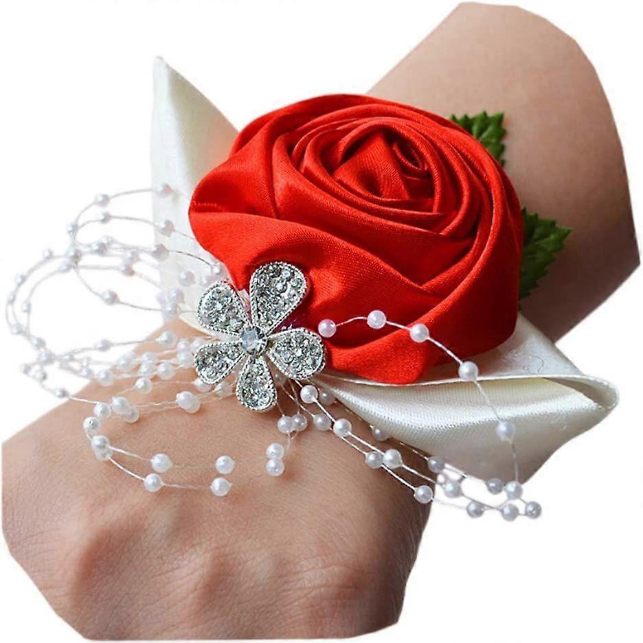 Wedding Bridesmaid Bride Wrist Corsage Decoration Hand Flower, Dark Blue(H-4)