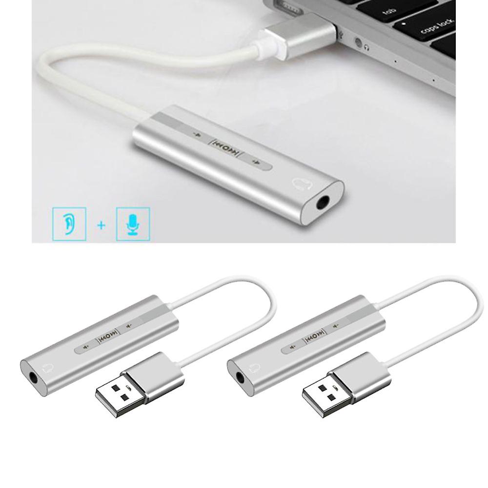 Audio Card - brand generique - 2 Pieces Aluminum Alloy USB External Stereo Sound Card Adapter For Headphone Highlights marque generique 2 Pieces Aluminum Alloy USB External Stereo Sound Card Adapter For Headphone Description: The USB external sound card Easily adds a 3.5mm TRRS port (built-in audio interface and 7.1 audio output, support microphone) to your computer, which allows you to connect your existing headset with 3.5mm TRRS to your PC via USB interface. EXTRA USB STEREO AUDIO ADAPTER WITH ADJUSTABLE VOLUME: It's perfect for bypassing a faulty sound card, audio port, or as a replacement for a broken USB audio adapter; With the ""+"" and ""-"" button, you can also adjust the volume according to your preference. Superb Sound Quality: USB external stereo sound adapter adopted advanced technology for best sound quality and device performance. It is built in a durable ABS case and with an ultra-compact design. Easy to set up: no driver required, just plug and play! USB bus powered, no external power required. Universal Compatibility: This usb headset adapter works with any standard USB Audio Class compatible system, including Windows 10/ 8.1/ 8/ 7/ Vista/ XP, Mac OSX, Linux and PS4, Windows surface 3 pro, Raspberry Pi etc Package includes: 2pcs USB Stereo Audio Adapter with 3.5mm TRRS
