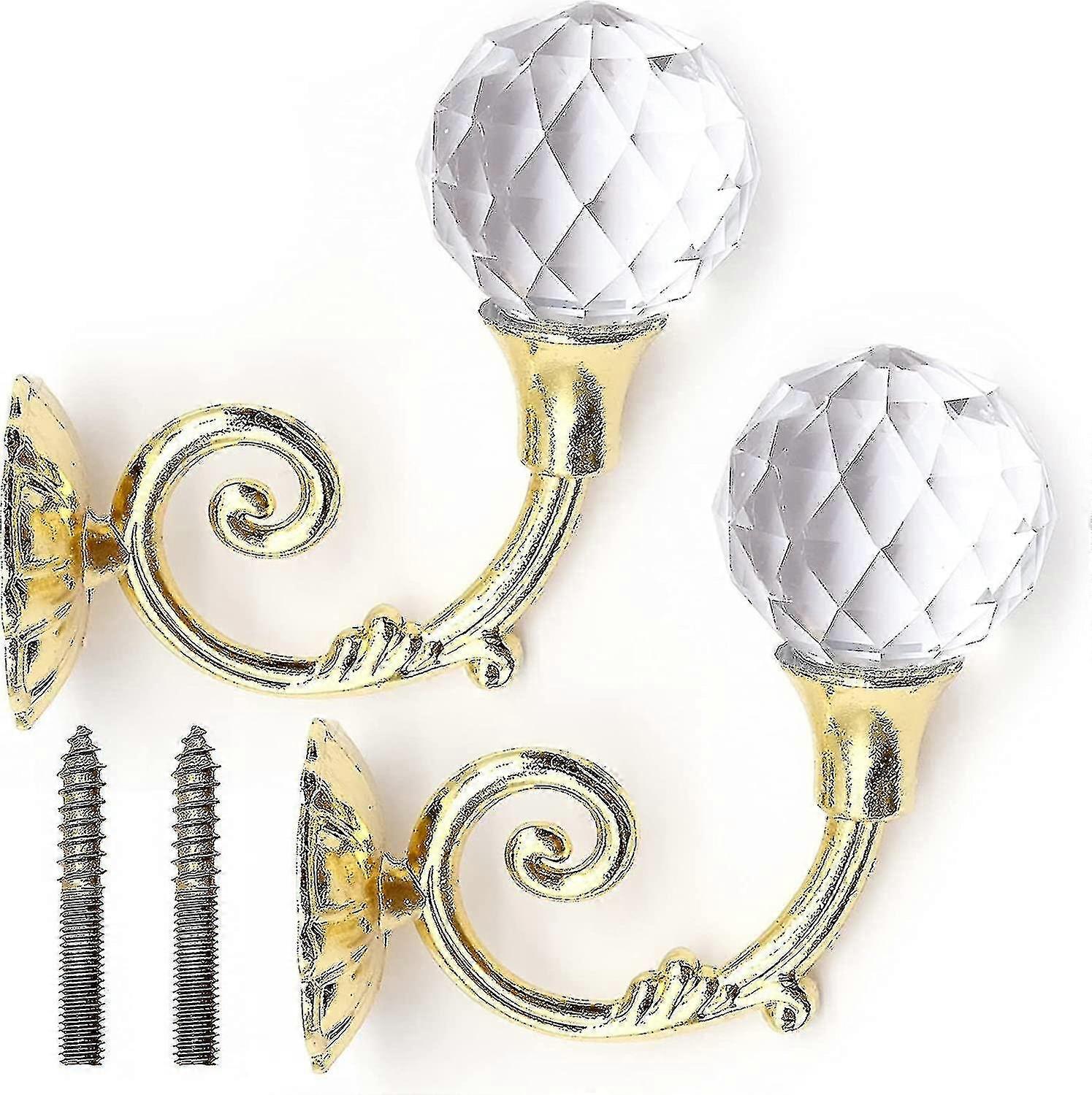 High Quality: The curtain hooks are made of sturdy metal, with an acrylic crystal ball inlaid on the top of the hook, creating an elegant and modern look Crystal Head Hook: The crystal hook can perfectly hang your curtains without edges sharp and wont scratch your curtains. The hook is beautifully shaped and the crystal reflects various brilliant colors under the light. When you hang curtains, it can decorate your windows VERSATILE USE: Our curtain hook has a gold metal look, it can be used with most curtains, it can be used not only for curtains, sheers and shower curtains , but also as a coat hook, towel rack or scarf hook. You can use it in your bedroom, living room or bathroom. Size: The diameter of the hook base is 4cm, the height of the hook is 6.5cm, the color is golden, the exquisite retro appearance can be the decoration of your living roomEasy installation: drill a hole on the wall, fix the corresponding screw on the wall, then tighten the hook, it can be reused and easy to install and disassemble
