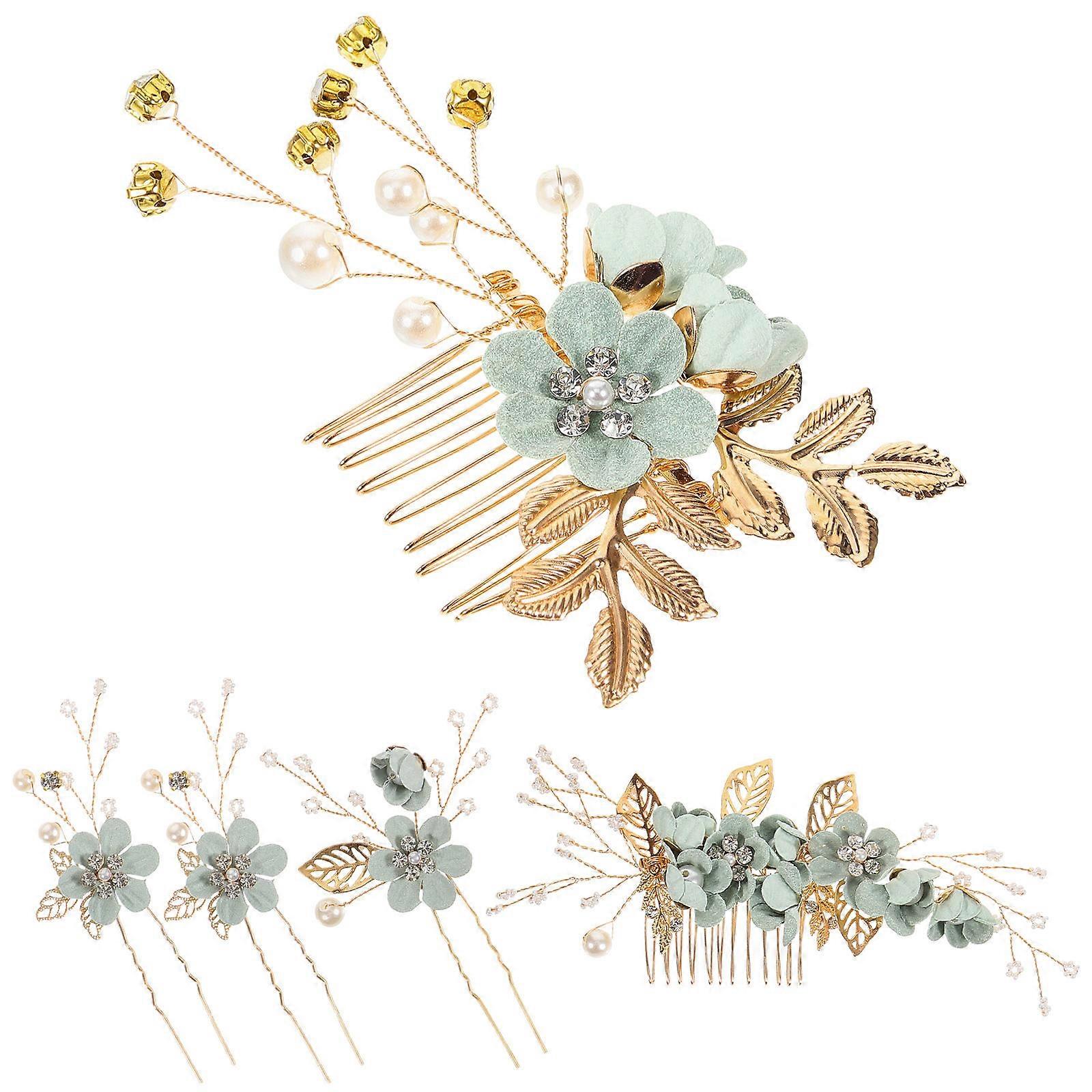 Bridal Hair Pieces for Women Hair Comb Pin Shape Metal Rhinestone Fabric Artificial Pearl Wedding Engagement Prom 5Pcs