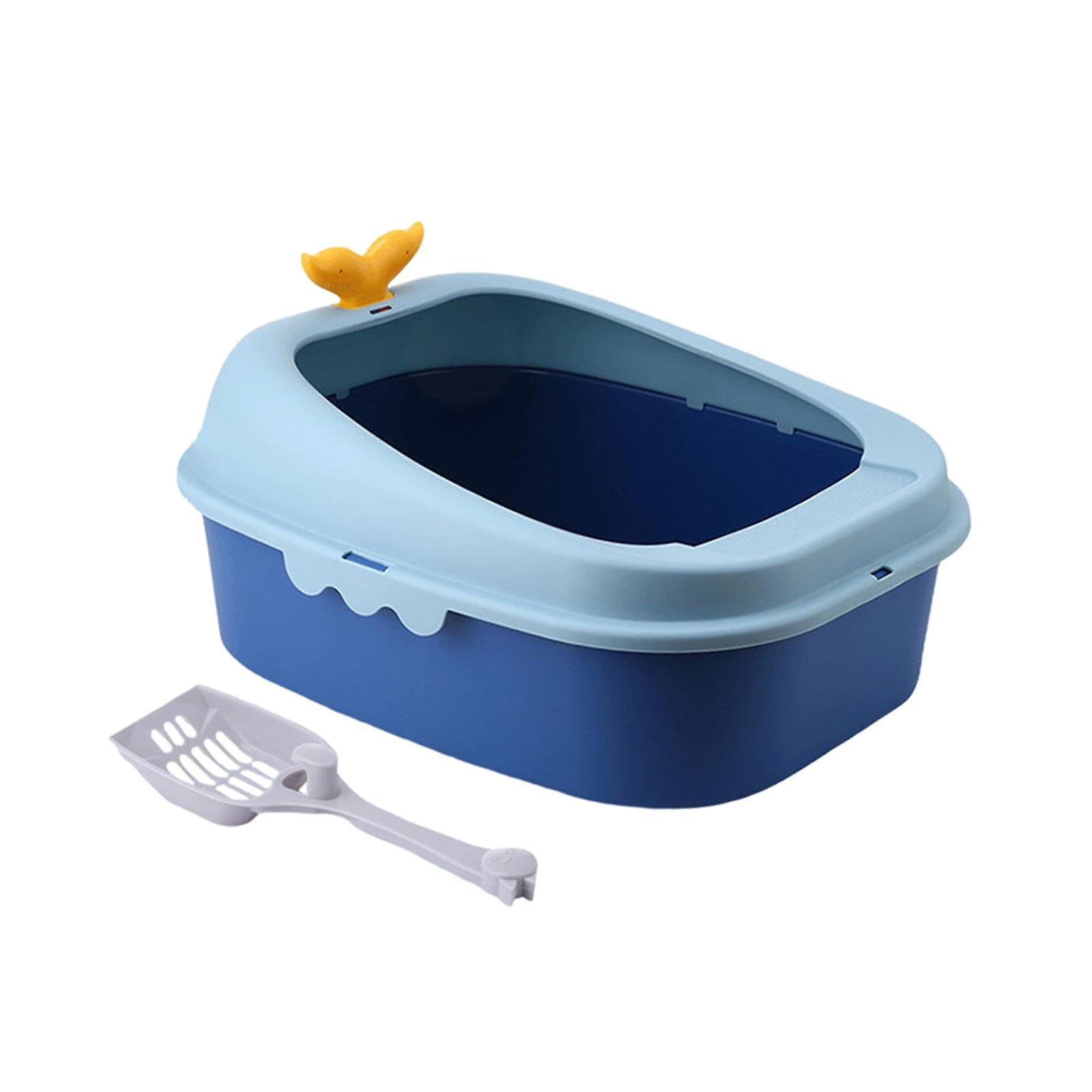 Kitten Toilet Open Top Pet Litter Tray Kitty Litter Pan for Cats Dog Kittens Blue L