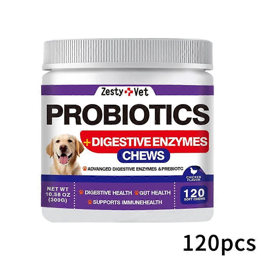 Pet Probiotic Chewable Tablets 120ct for Digestive Health Immunity Support Skin Care Bad Breath Relief Easy Chew Supplement for Dogs Cats