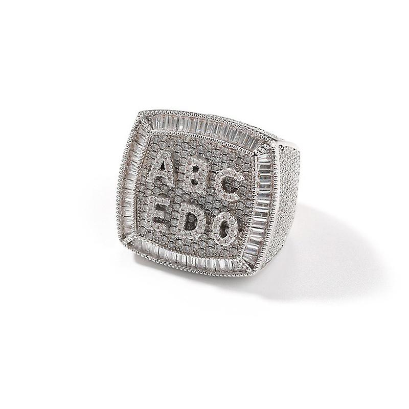 Custom Letter Rings Full Cz Stone Paved Solid Square Finger Ring For Men Hip Hop Bling Iced Out Rapper Jewelry Drop Shipping
