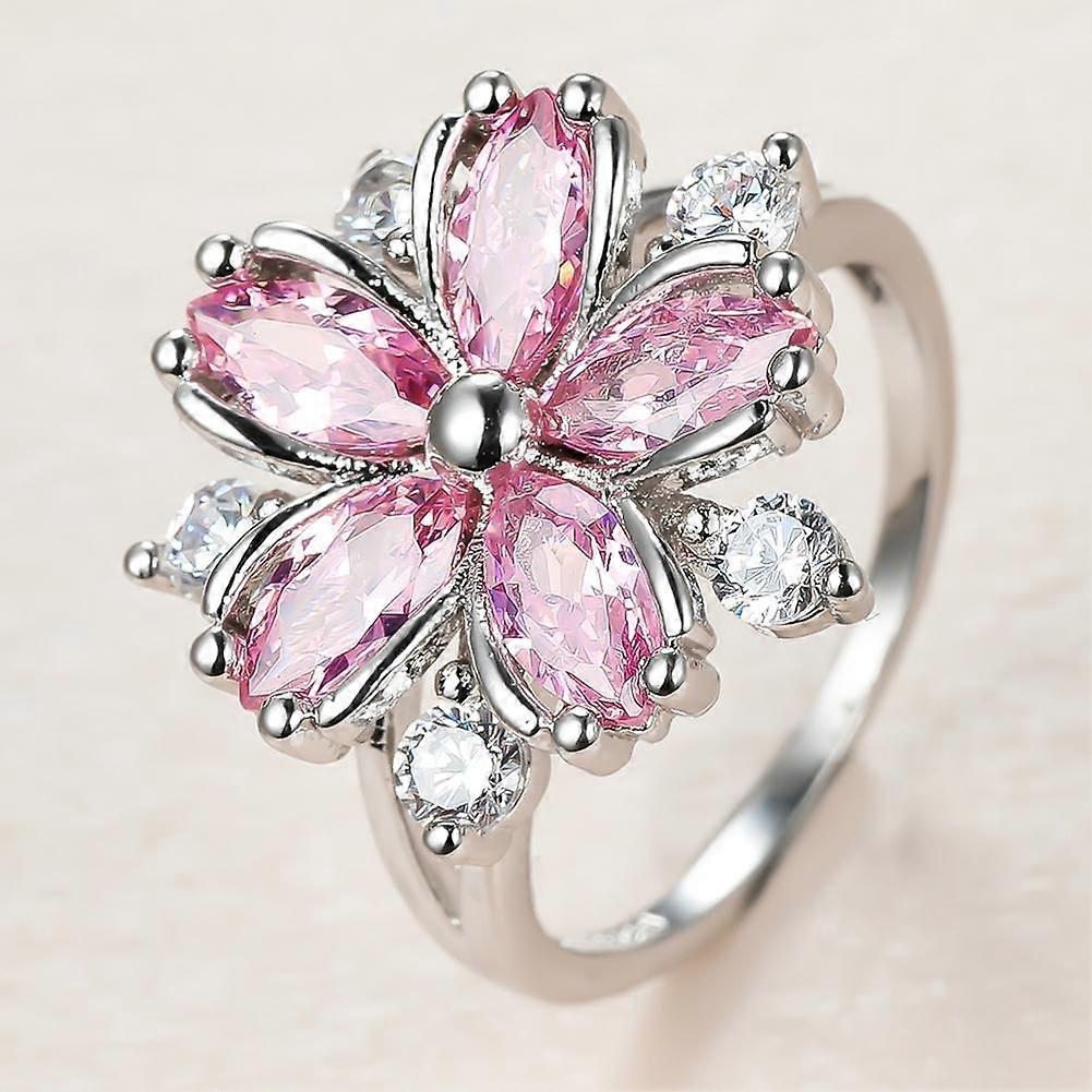 Elegant Fashion Princess Engagement Rings for Bride Jewelry Romantic Blossom Pink Stone Lady Rings