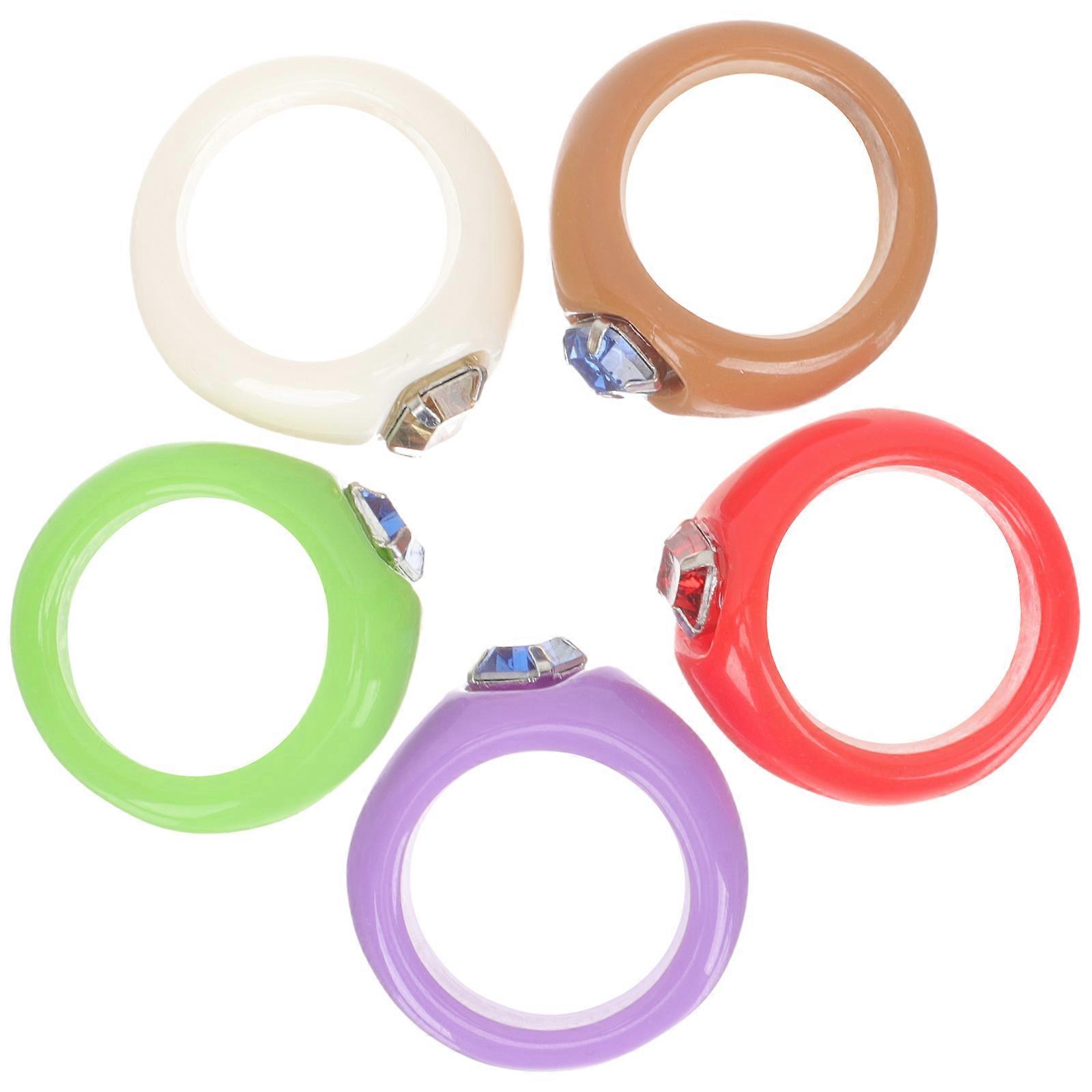 Resin Finger Rings for Decoration 5Pcs Creative Rhinestone Set