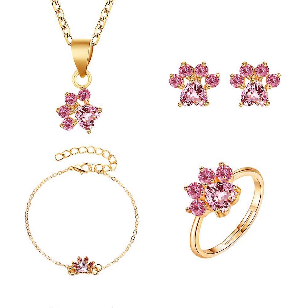 Ladies Zircon Rings Cat's Paw Jewelry for Decoration 2Sets Alloy Material