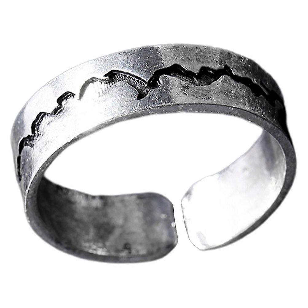 Vintage Men's Rings Stylish Creative Ring Fashion Antique Silver Finger Ornaments Opening Adjustable Square Metal Blue-Green 1Set