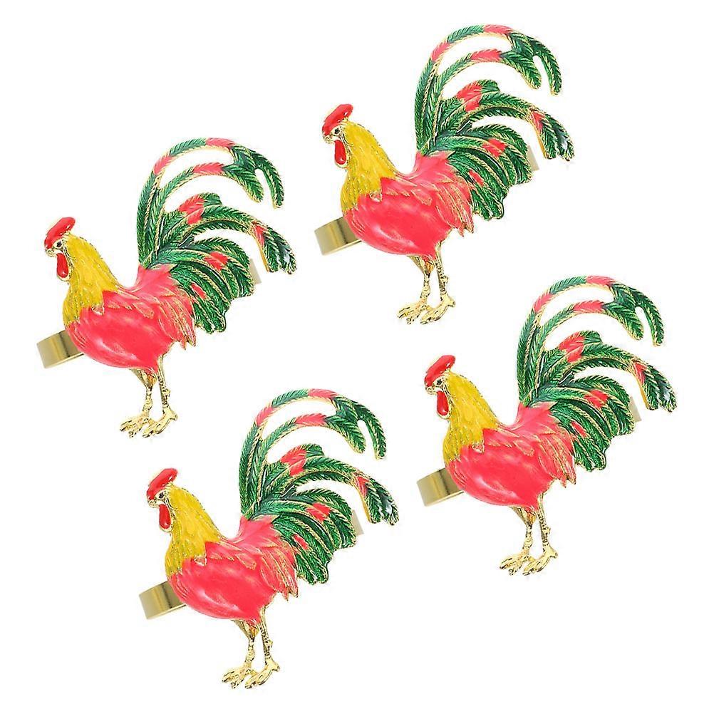 Rooster Napkin Rings Enamel Coating Home Users Hoteliers 4Pcs