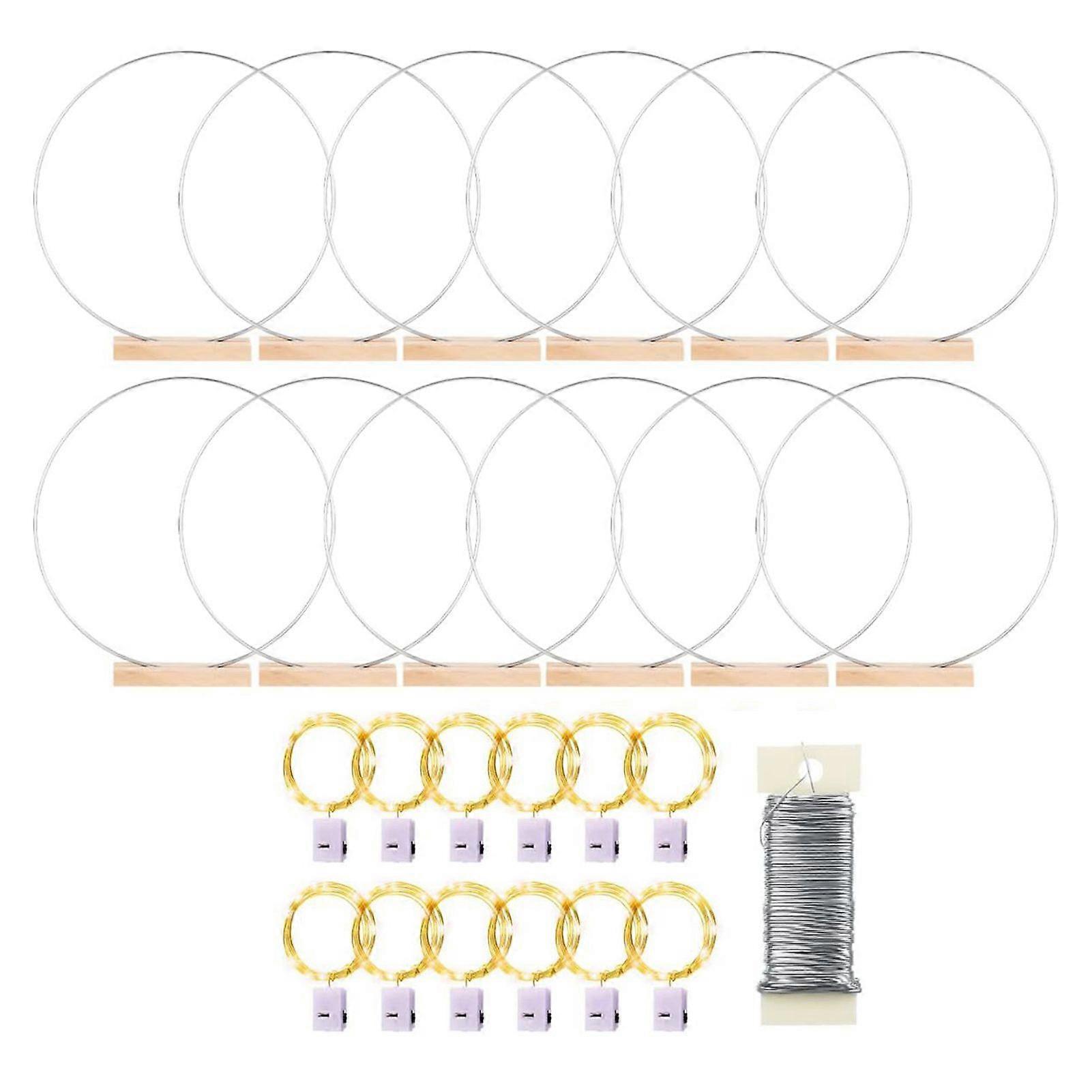 12Pcs Metal Rings Set with Stand And LED Fairy Lights for DIY Centerpiece Table Decorations Crafts Floral Hoop Wreath Dream Catcher Ring for Wedding C