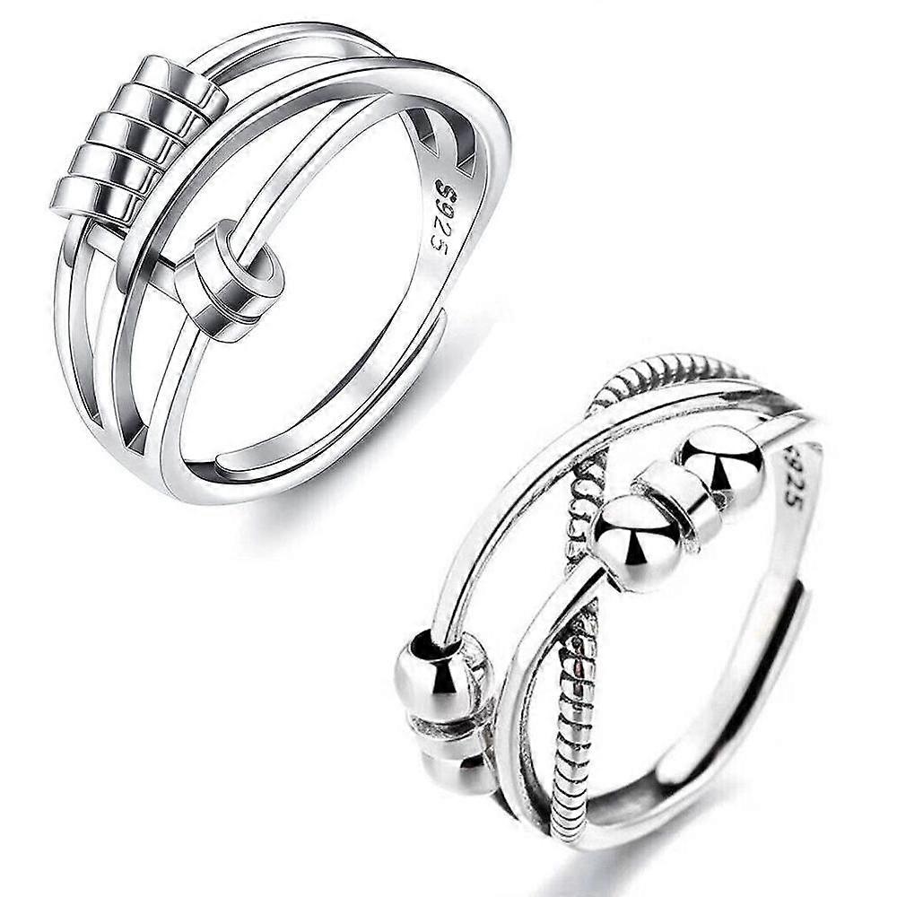 Womens Rings 925 Sterling Silver Fidget Ring Spinner Stress Relief Band QZF