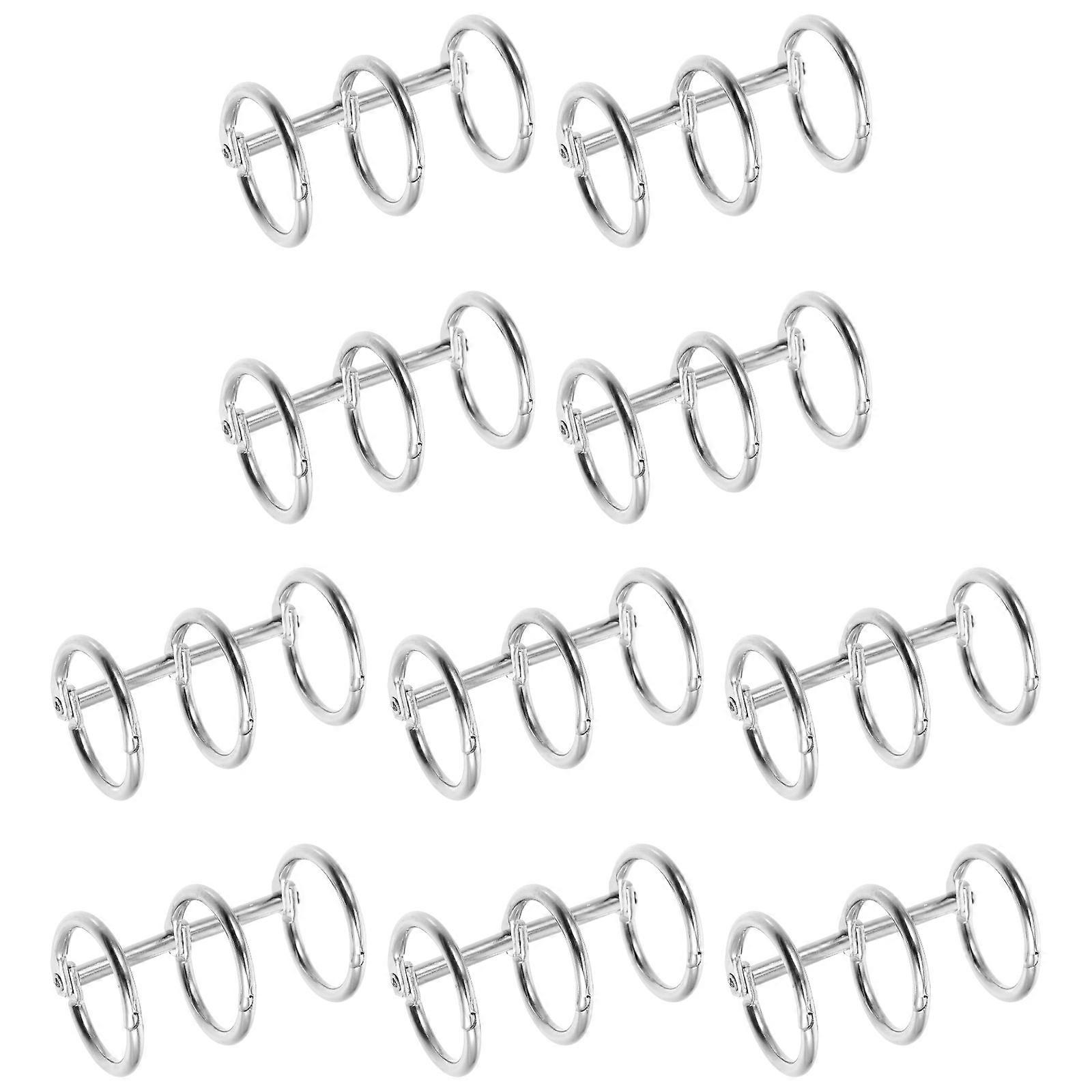 Book Binder Rings Silver Color 3-Ring Openable Design For Calendars Notebooks 10Pcs