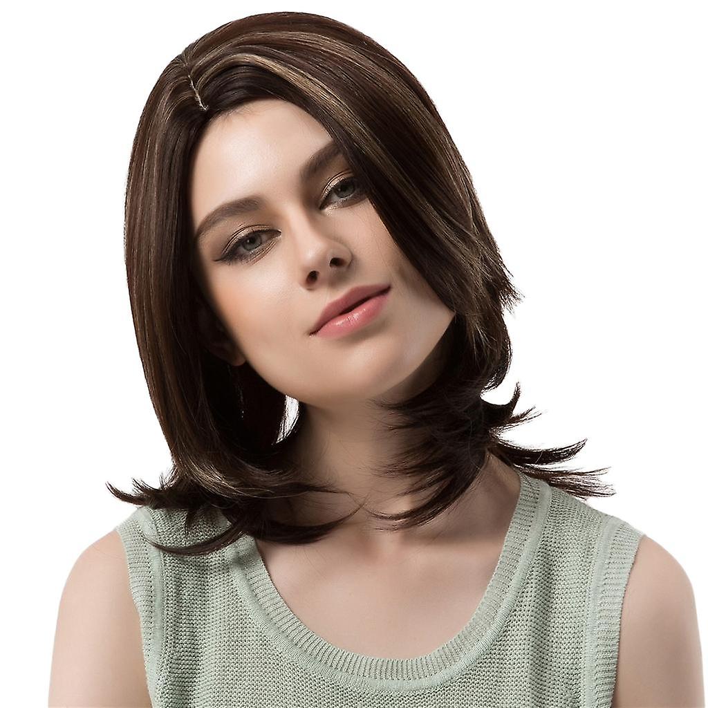 Natural 15'' Women Straight Short Wig Side Part Synthetic Hair Full Wigs