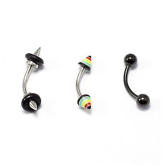 Black eyebrow ring 3pc 16g surgical steel spike rasta 8mm ear cartilage piercing