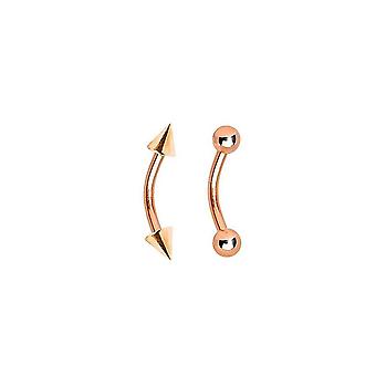 Rose gold eyebrow ring 2pc i.p. curved barbell ball spike ends cartilage 16g 8mm