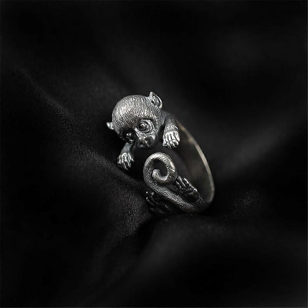 Vintage Animal Cat Ring With Tail Ancient Silver Color Monkey Tiger Bee Opening Finger Rings For Women Man Punk Hip Hop Jewelry