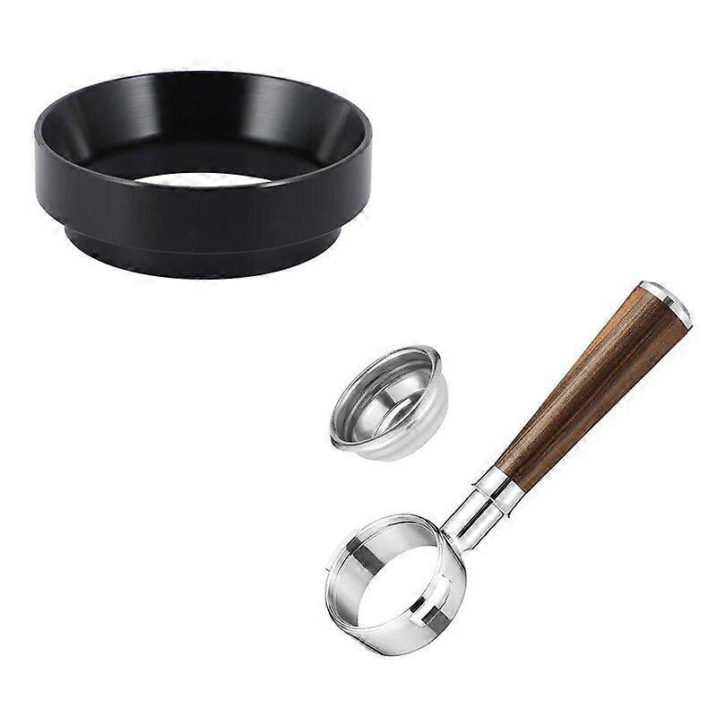 2 set Coffee machine accessories: 1 x handle with coffee bowl 1 x Dosing RingMORE COFFEE-SAVING: The funnel has a rim that keeps it in position and it stays put while you fill the basket. It really solves the mess problem, improves tampering quality and catches all of the coffee grounds.MORE QUALITY: Our coffee powder funnel is made of premium 304 stainless steel, non-rust nor corrosive, safe to your family health. It has a nice finish and is heavy, sturdy.MORE CONVENIENT: It is dishwasher safe, rinsing it with water or cleaning it with brush is also okay. About use, simply placing it atop of portafilter while grinding, distributing tamping, then removing it quickly when finished.MORE RELIABLE: Any quality or craft problem, please feel free to contact us; we would make it better.Multi-version Compatible Use: This 58mm bottomless portafilter compatible with the Expobar Espresso, Rocket Espresso, Rancilio Espresso, Faema Espresso, Wega EspressoCoffee master's training partner: the bottomless design can help observed the flow column, flow rate, color, flow column stripes, etc., find the defects and errors before extraction, and better judge the uniformity of extraction, thereby making it more delicious and more consistent EspressoPerfect extraction: This bottomless portafilter for Espresso can enhance the cleanliness of the coffee. The coffee liquid extracted by the bottomless handle has more fat and better quality, so you can enjoy the shiny golden brown coffee column that is immersed in the espresso In the beautyColour: brown + silver+blackMaterial: stainless steelSize:Dosing Ring: about 58mmcoffee bowl length: 23cmPackage Contents:1 x handle1 x coffee bowl1 x Dosing RingOnly the above package content, other products are not included.Note: Light shooting and different displays may cause the color of the item in the picture a little different from the real thing. The measurement allowed error is +/- 1-3cm.