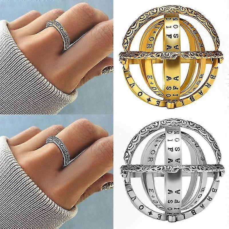 Astronomy Inspired Rotating Ring for Women & Men - Gothic Punk Style Cosmic Jewelry with Orb Design