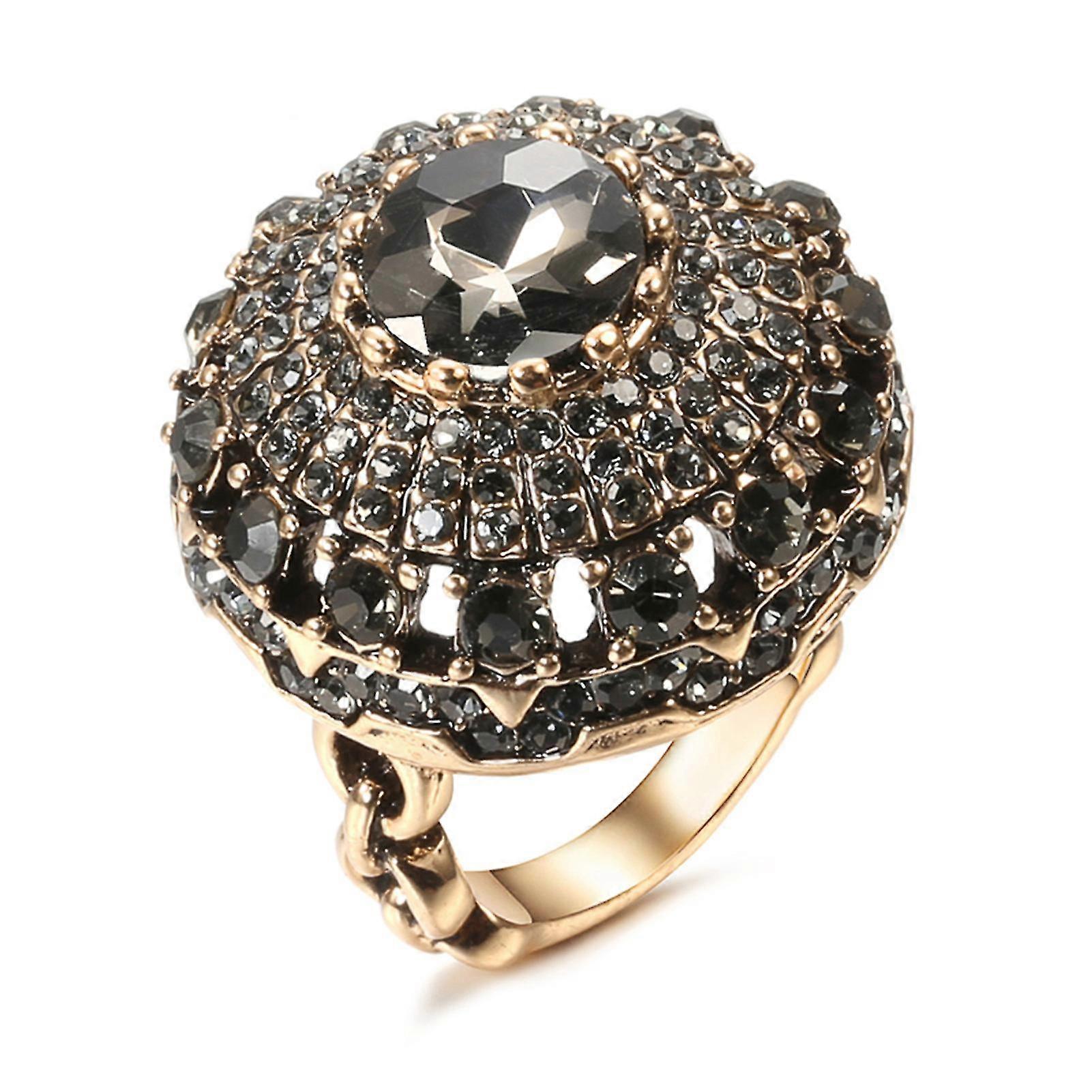 Ethnic Bridal Wedding Ring Retro Gold Color Full Gray Crystal Ball Ring For Women Party