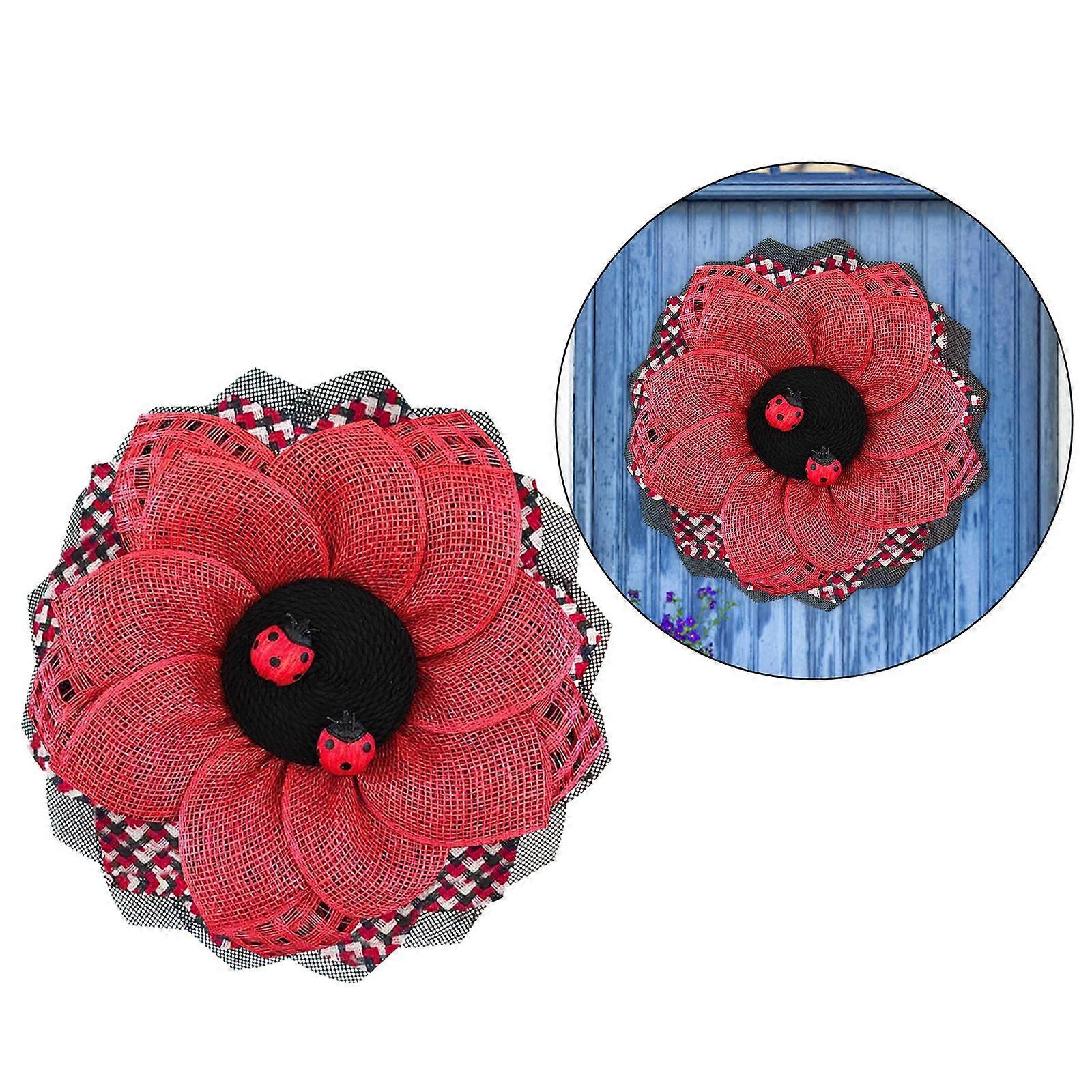 Hanging Ladybug Flower Ring House Garland 30cm for Festival Easter Day Wall Decorative