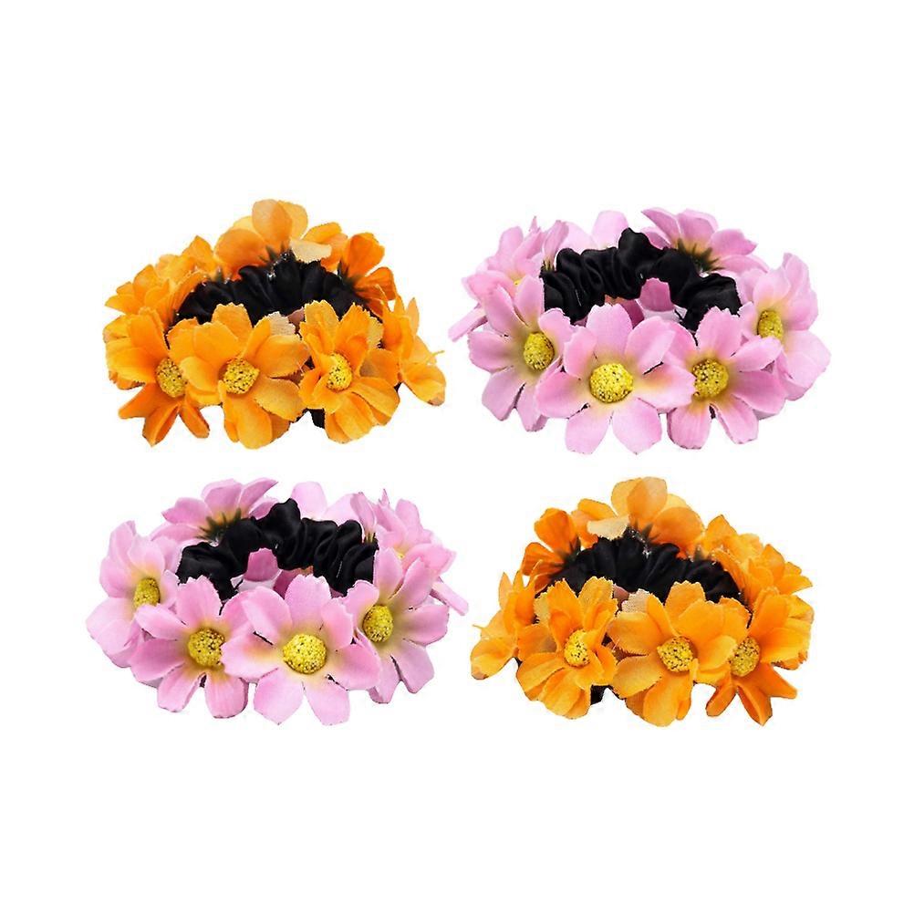 Cloth Simulation Daisy Flower Hair Ring for Decor 2Pcs Assorted Color Hair Tie