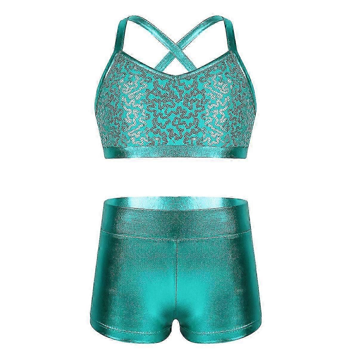 Kids Girls Sequin Ballet Tutu Ballerina Fancy Tankini Outfit Dance Class Gym Workout Stage Sets