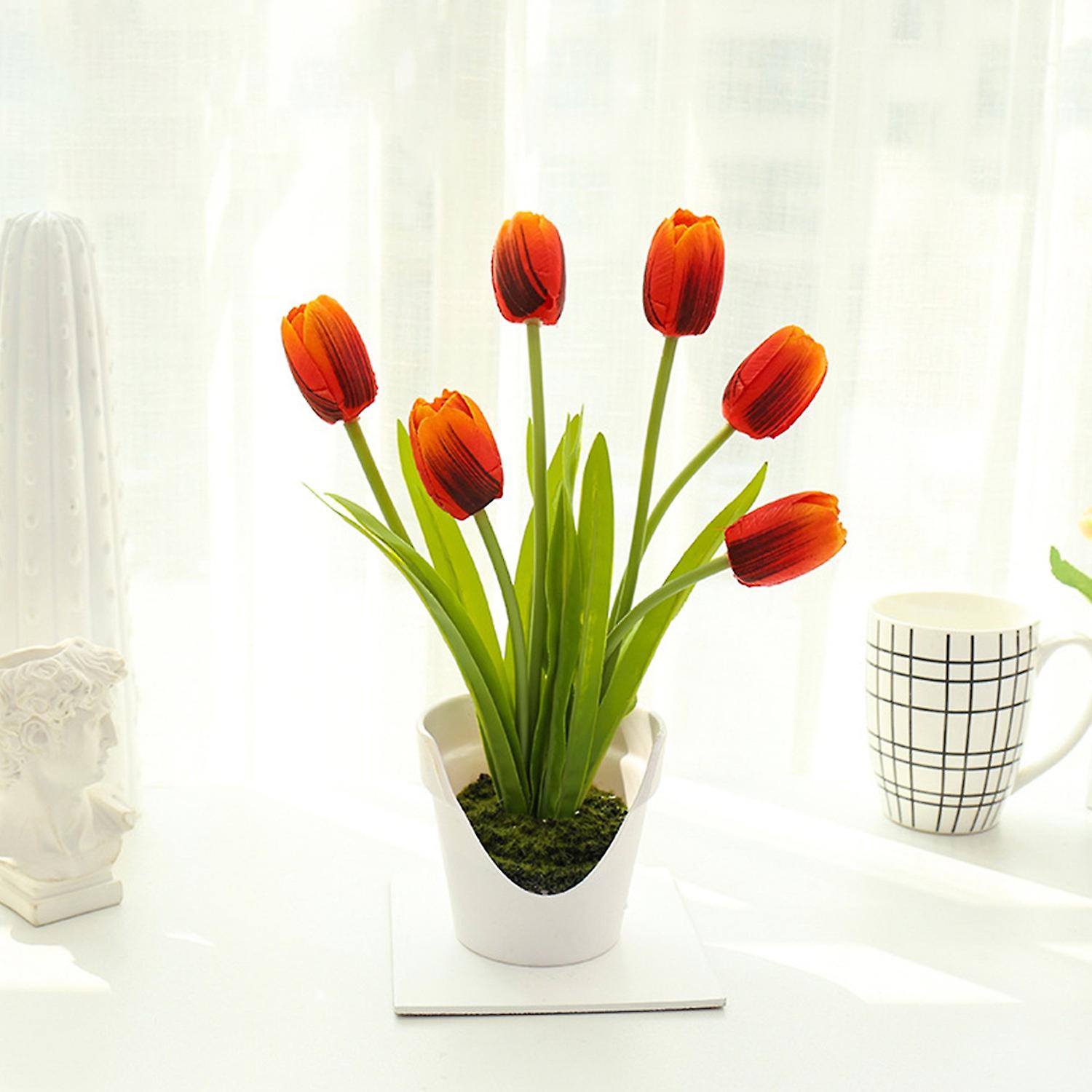 Artificial Tulip Exquisite 6 Heads Faux Silk Flower Natural Simulation Potted Plants for Home