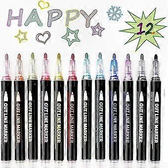 Shimmering Doodle Markers, Metallic Glitter Pens for Creative Drawing, Double Line Art Supplies, Festive Gift Set for Christmas Crafting