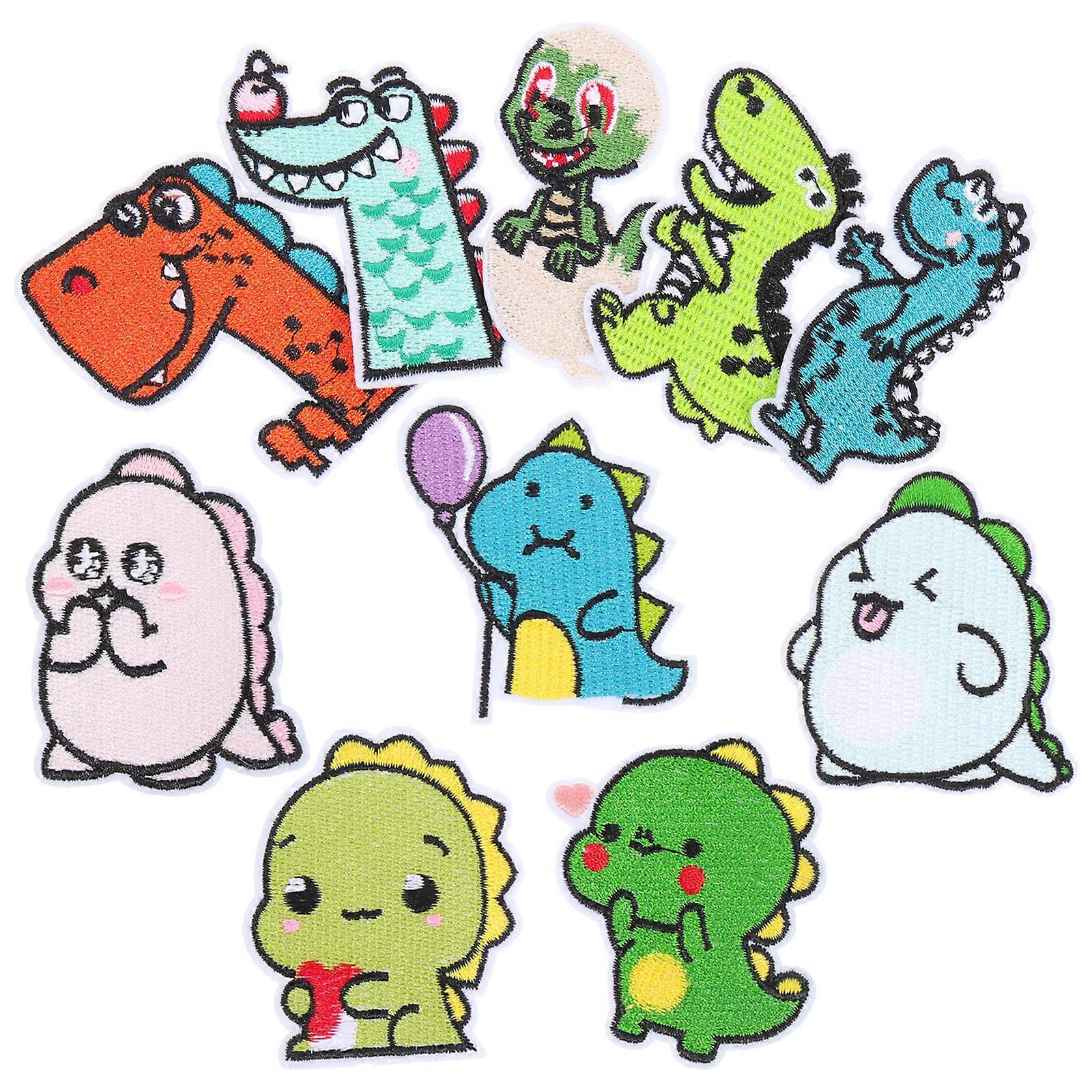 Cartoon Dinosaur Patches Embroidered Appliques Hats Reinforcing Assorted Color 6.3X5.5X0.1CM 10Pcs