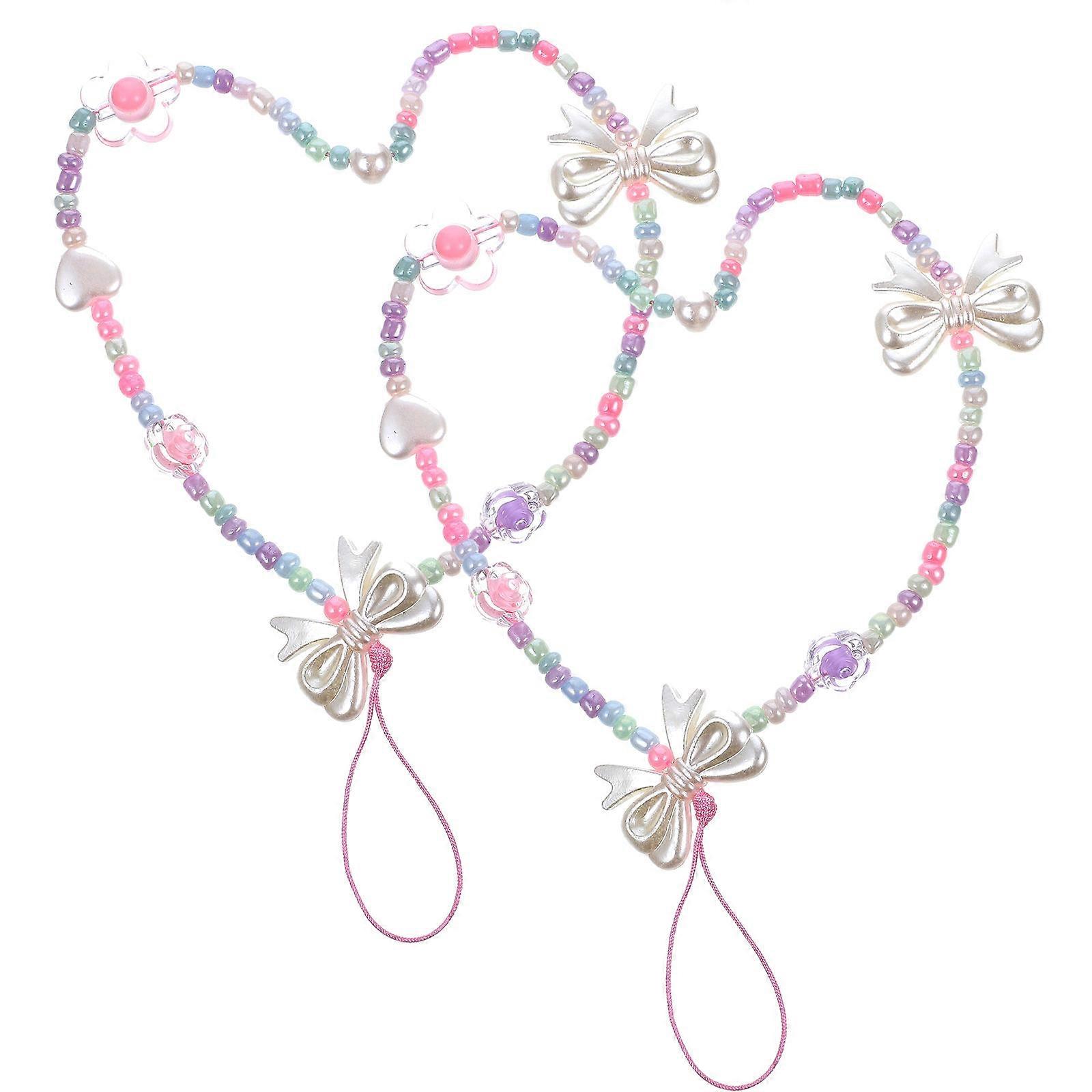 Cute Phone String Beaded Lanyard Family Accessory Resin 2Pcs