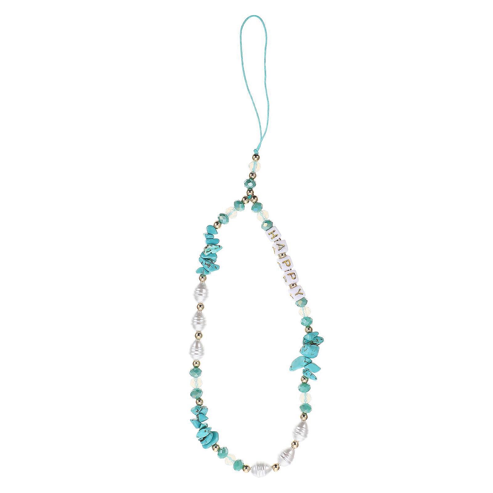 Phone Case Hanging Rope Mobile Phone Anti-Lost Chain Stone Pearl Design Wrist Carry Prevent Theft Everyday Use 30CM Blue 1Pcs
