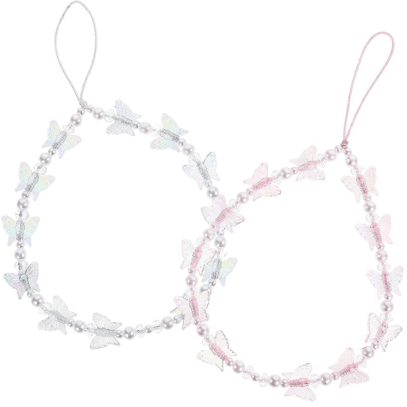 Phone Bracelet Strap Beaded Mobile Phone Decoration Pink 7.86X0.59X0.08in Fashion Women Everyday Use 2Pcs