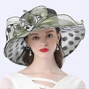 טמפרמנט מנוקד נקודות כובע גדול שוליים נשים רחוב יום יומי כובע שמש וינטאג 'פרח פנינה אורגנזה חוף כובע שמש שמשיה מגן כובע שמש כובע עליון