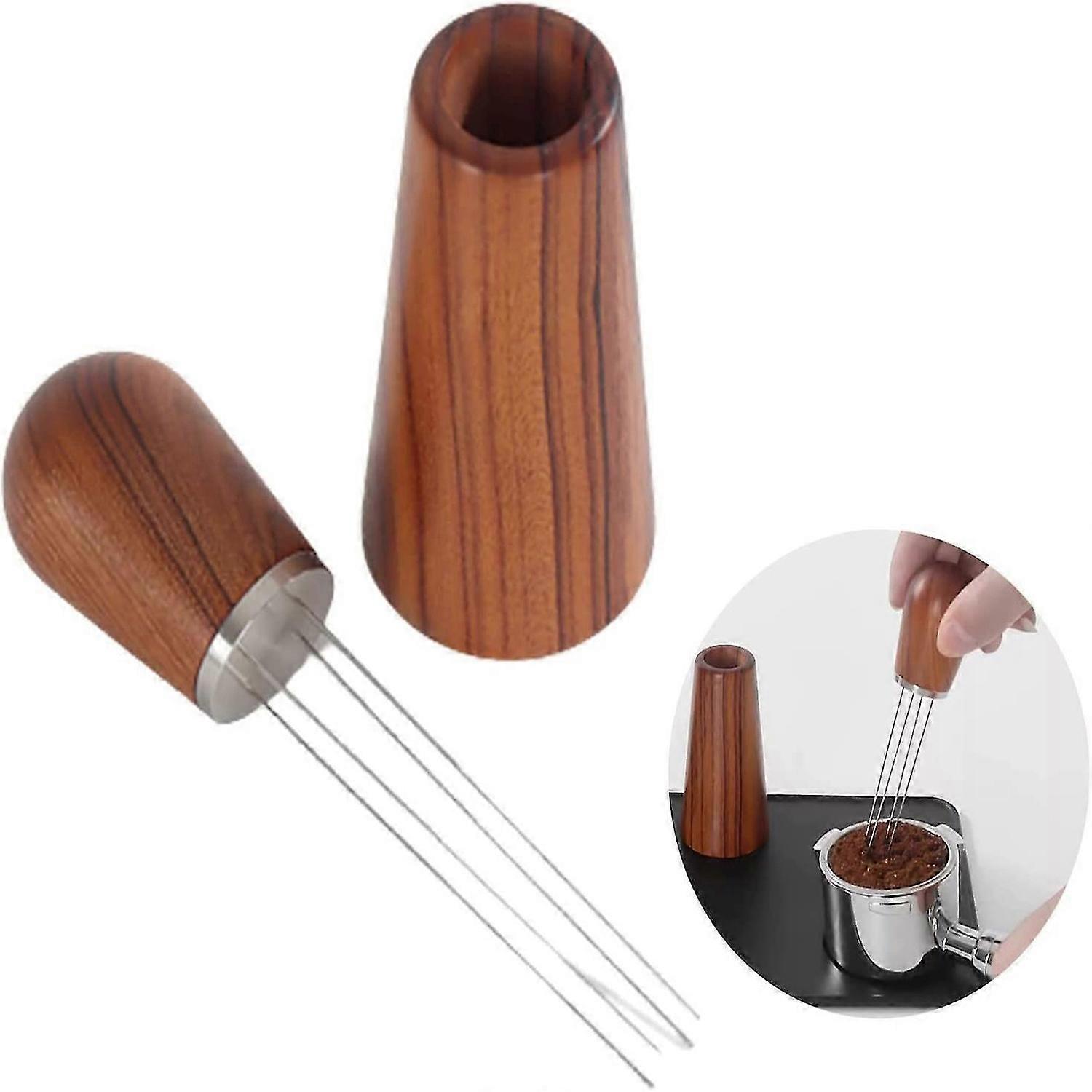 Coffee Tamper, Espresso Needle with Natural Wooden Handle and Stand for Espresso Distribution