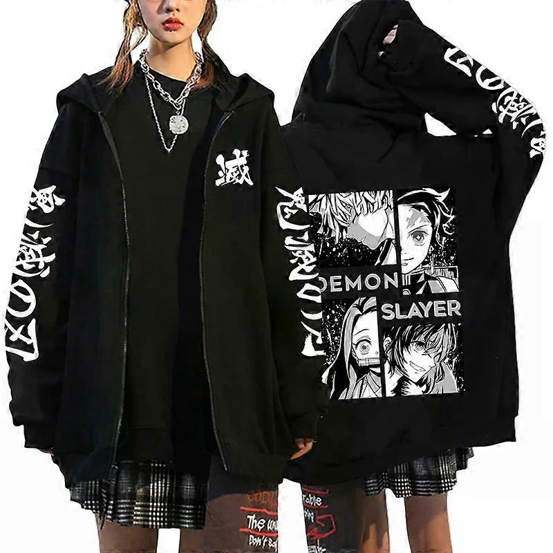 Tanjirou Zenitsu Inosuke Pattern Sweatshirt Autumn Coat Japan Anime Print Black Hoodie Woman Hooded Long Sleeve Zipper Jacket
