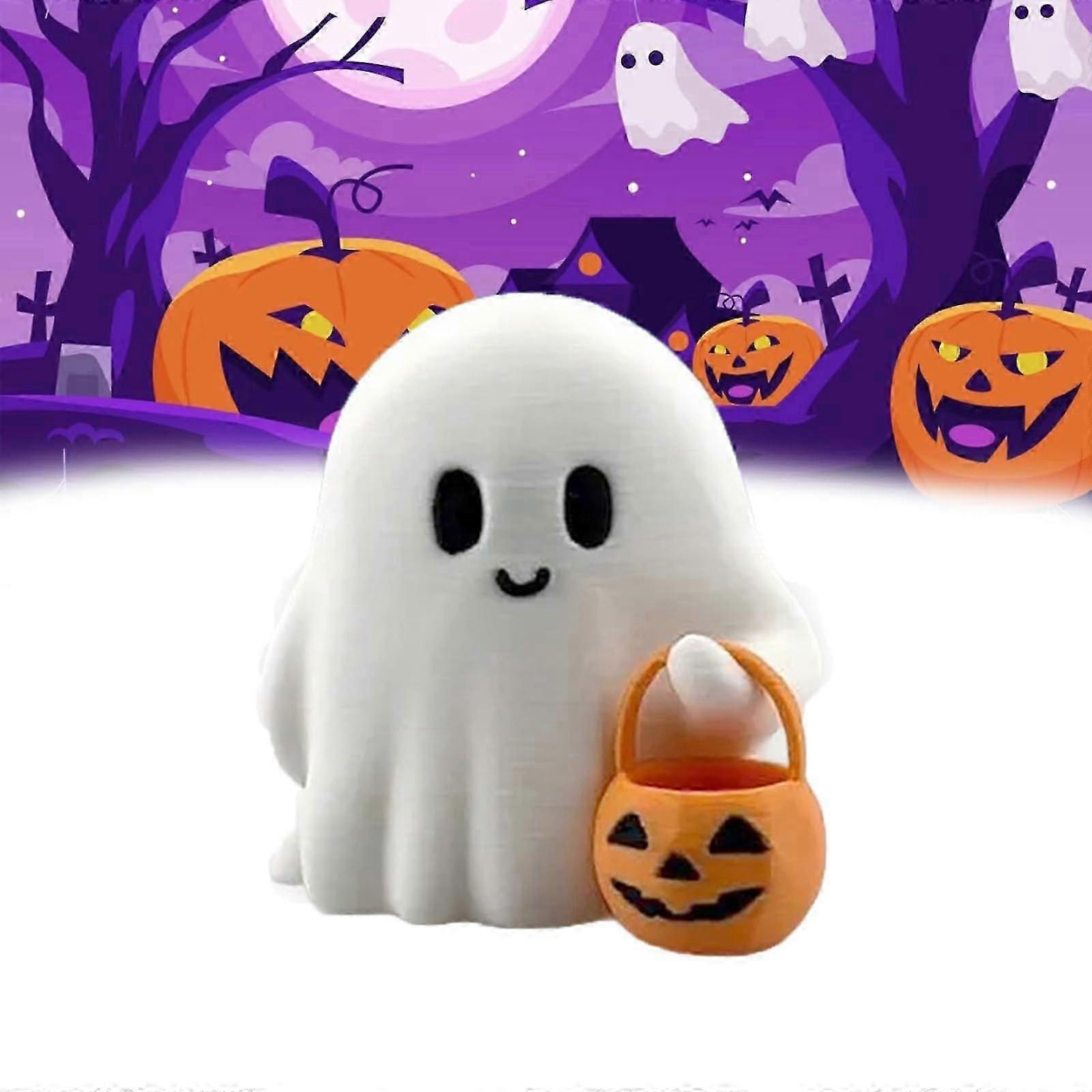 Trick or Treat Ghost Figurines Cute Mini Halloween Ghost Figurines with Pumpkin Buckets for Party Favors & Gifts