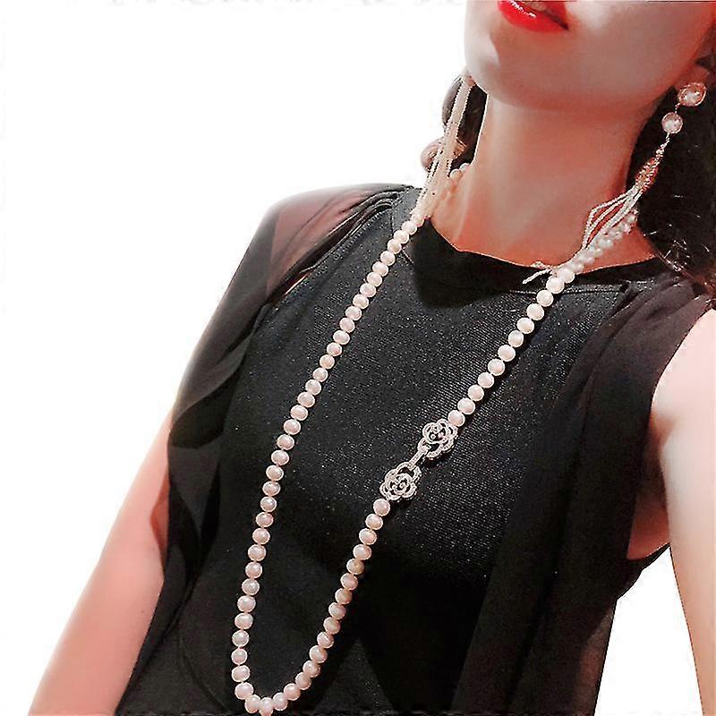 trendy real natural long pearl necklace women,wedding white freshwater round pearl necklace party gift