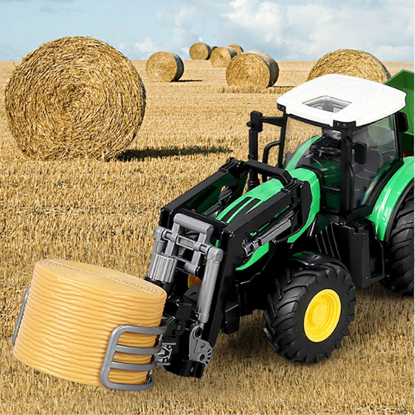 Remote Control Tractor 1:24 2.4G Kids RC Farm Toy Set Non Slip Wide Wheel with Light Christmas Birthday Gift Green